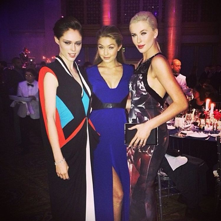 -She was also seen socializing with fellow glamazons, Coco Rocha and Gigi Hadid at the 2014 amfAR Gala. At an enviable 6'2, Ireland fits right in with the supermodel set.