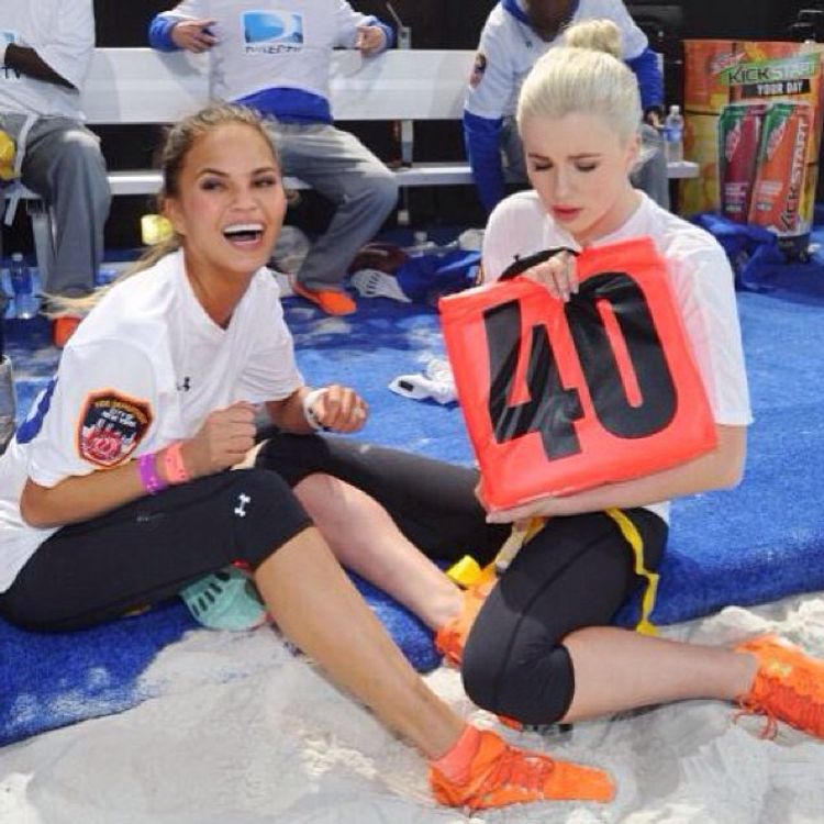 -In February, she competed alongside Chrissy Teigen in the pre-Super Bowl celebrity sporting event in New York.
