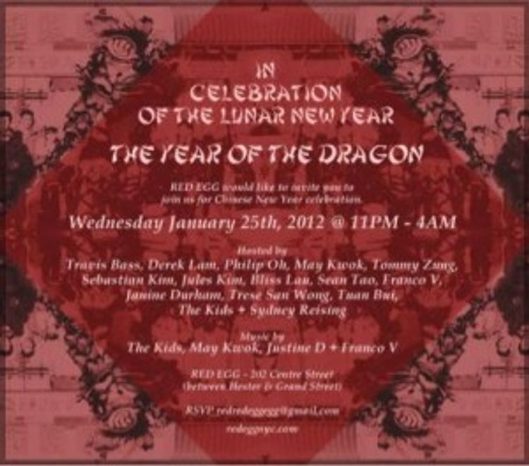 Year of the Dragon Dinner at Red Egg When: 7:30 PM Where: Red Egg Why: Celebrate the Lunar New Year: The Year of the Dragon, and dance the night away at Red Egg. [Details]