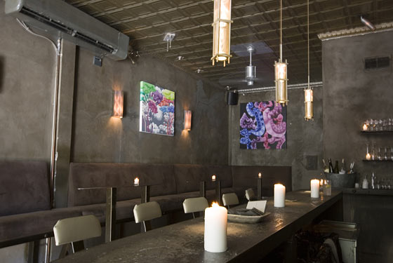 Room and Otheroom, the Tribeca location has the same slate topped bar, concrete floor and steel furniture, giving it a kind of minimalist-cool vibe. The menu is also similar - domestic beers and Euro brews, as well as plenty of wines, all written out on a chalkboard in all caps. The candlelight happy hour offers an intimate time to catch up with friends and is a great way to pass time between film showings.